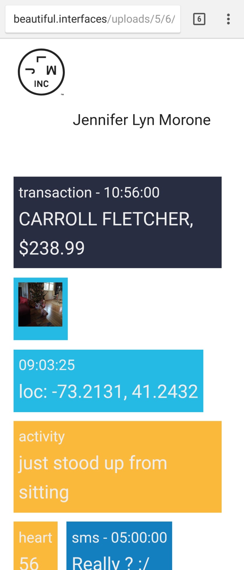 Jennifer Lyn Morone affirms “I am a data slave and so are you”. Morone uses ethics and economic reasoning to create a business model, where she is the corporation that owns her own data. Jennifer Lyn MoroneTM Inc is a hyper capitalism model, where Morone over exposes her data in order to protect and capitalize it. For the exhibition, the curators have selected to show Jennifer’s data from their first contact with her up until the moment of the exhibition.