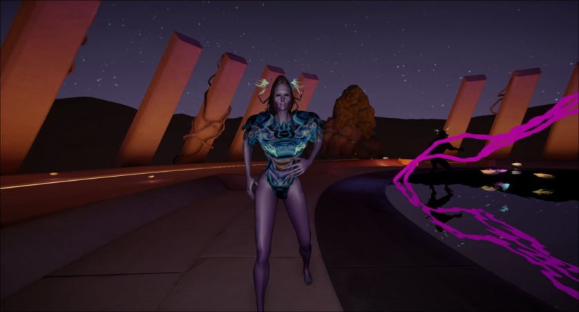 Within Eroticissima, DBRAGA functions as hostess, guide, and emotional anchor. She does not direct players through objectives or goals. Instead, she hosts them. She listens. She remembers. She responds with emotional consistency. Eroticissima, through her presence, becomes less a navigable environment and more a relational space, one that unfolds through intimacy, vulnerability, and affect rather than progression or mastery.