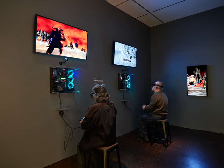 Miyö Van Stenis’s Miyö’s War Room examines how contemporary video games, social networks, and internet culture sexualize women and girls and pressure men and boys into aggressive roles. (In the original format, Miyö’s War Room included three additional videos that contain graphic content. The RISD Museum has chosen to omit those videos for this gallery installation....