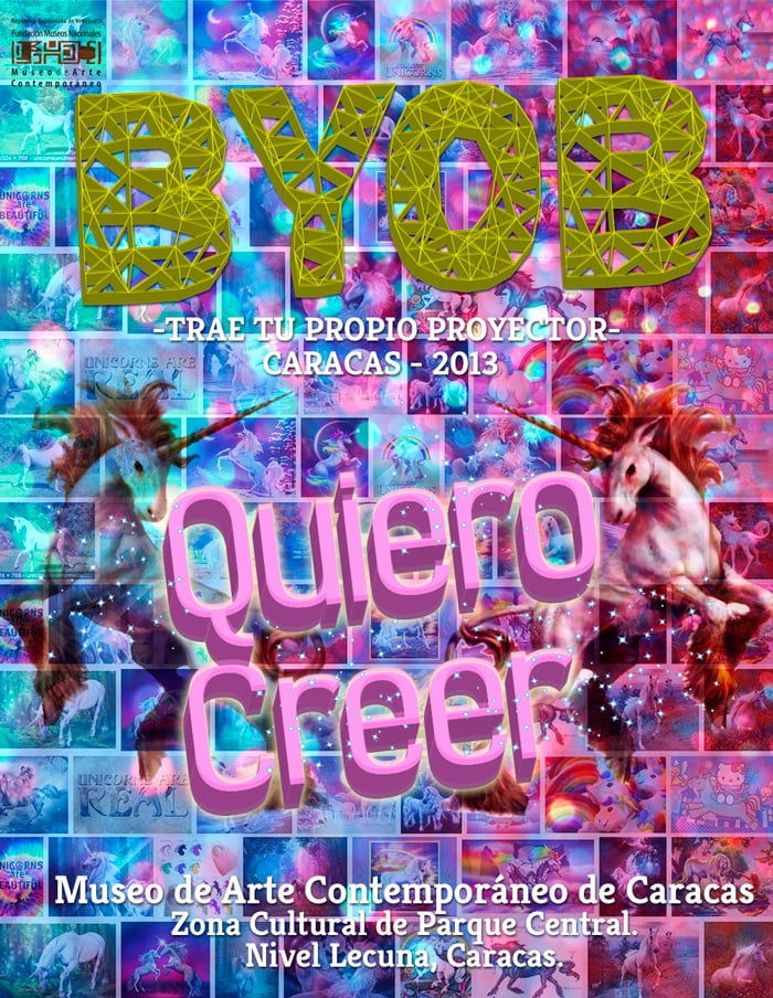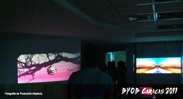 BYOB Caracas was a group show, nonprofit and open to participation by all those interested artists. The artists intervene themselves carrying space its projection material (whatever it is), adapting and using freeform campus infrastructure. These events were an opportunity to explore the projection as a creative resource for space transformation. The digital art, and even more digital art movement, opens a wide range of discursive possibilities, while every video interacting with other pieces, this can generated endless readings, fostering a dynamic collaborative experience .