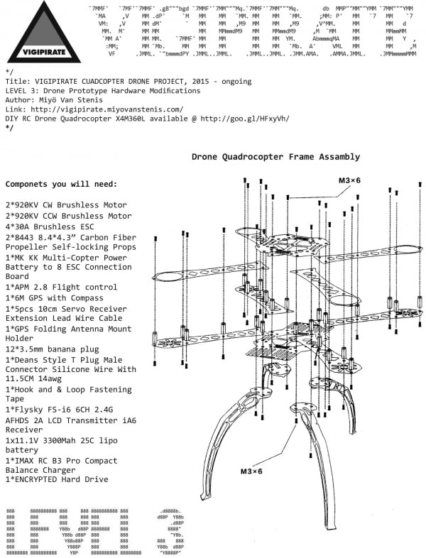 The small drone prototype presented in this project represents the second level of security on the plan Vigipirate. The small object was modified to contain an encrypted SD card with a collection of my artistic work, information, passwords, audio conversations, images, and other data I collected while working for the Venezuelan Government between 2011-2013. According to Venezuelan law, any action against the government can be considered an act of “terrorism” or “treason.” However, outside their jurisdiction, I protect my work and content.